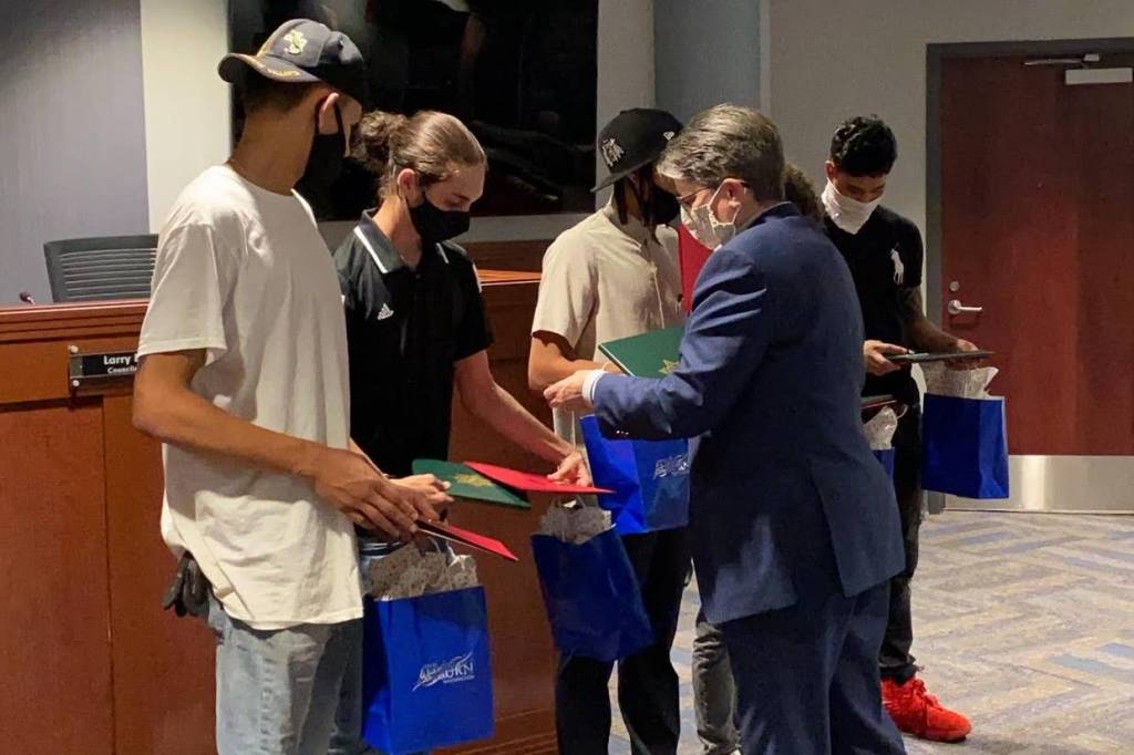“On her behalf, I have to thank you,” Johanknecht told Dominic Sansaver, 19, Isaiha Sansaver, 17, Tyran Powell, 18, Kai Tavares, 18, and Darrell Swilley, 16. “She believes, and I believe, had you not been there for her on this day, she might not be alive.”