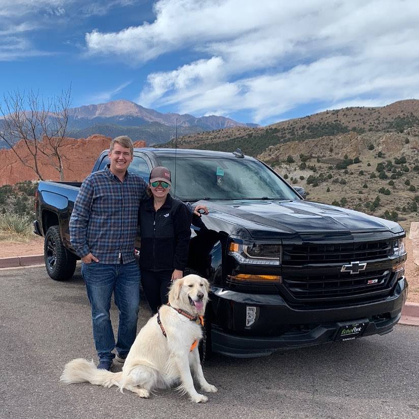 Kolby Crossley, the Auburn Police Department’s new public information office, relaxes with his wife, Alyssa, and Bear, their 100-pound Great Pyrenees. Courtesy photo