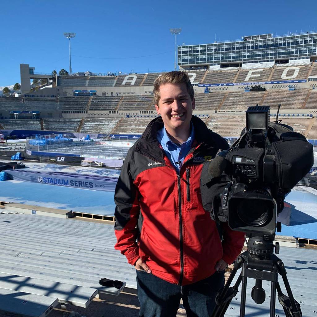 Kolby Crossley, the Auburn Police Department’s new public information officer, when he was a television reporter in Colorado Springs, Colo. Courtesy photo.
