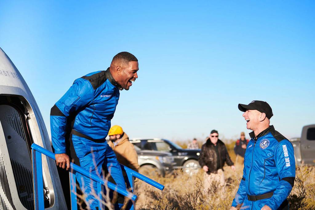 Strahan, co-anchor on ABC’s “Good Morning America” and a former NFL star, was a guest on the flight of Blue Origin founder Jeff Bezos, also the founder of Amazon. Shepard Churchley, the eldest daughter of Alan Shepard, who was the first American to fly to space, was a second guest. The remaining four were paying members. Blue Origin has not revealed how much each of them paid.