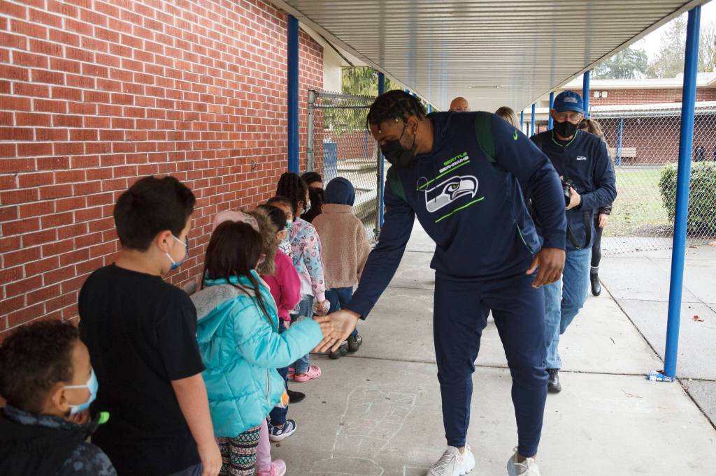 Seahawks linebacker and mascot visit Auburn schools