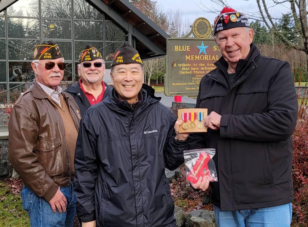 Walt Tanimoto, the post commander of VFW Post 6785, surprised Sample last month at Tahoma National Cemetery in Kent with the honors.