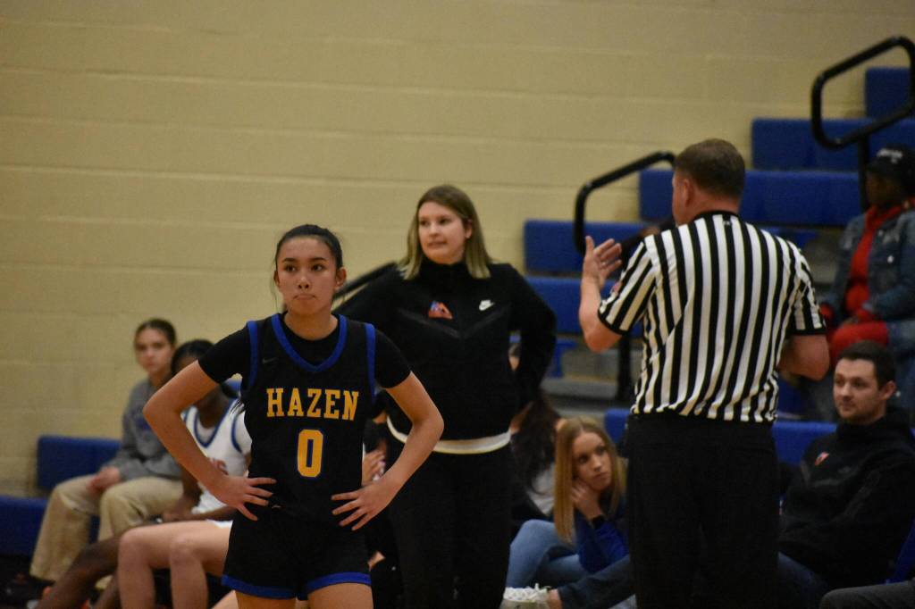 After timeouts and fouls in the game against Hazen, Lacey felt that she was left on an island and ignored by the officials who called the game. In the fourth quarter, Lacey was given a bench warning, which was followed by a highly animated conversation with that official.