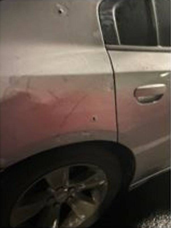 At home, she realized her vehicle received multiple gunshots in the shooting, including a tire.