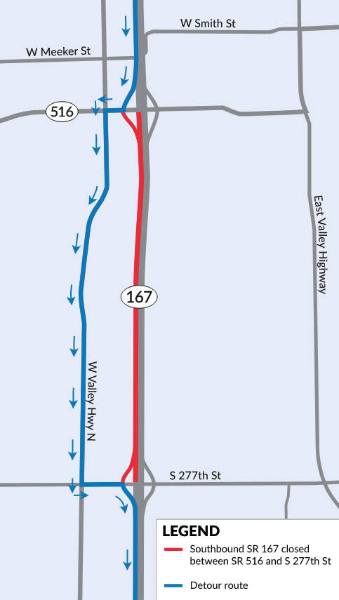 WSDOT has postponed due to rainy weather forecasted for Aug. 23-26 the repaving of State Route 167 in Kent between State Route 512 and South 277th Street. COURTESY GRAPHIC, WSDOT