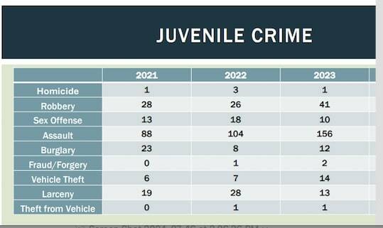 The number of forcible rapes this year is down by 21 percent, and the 300 burglaries is 45 percent lower than in 2023.