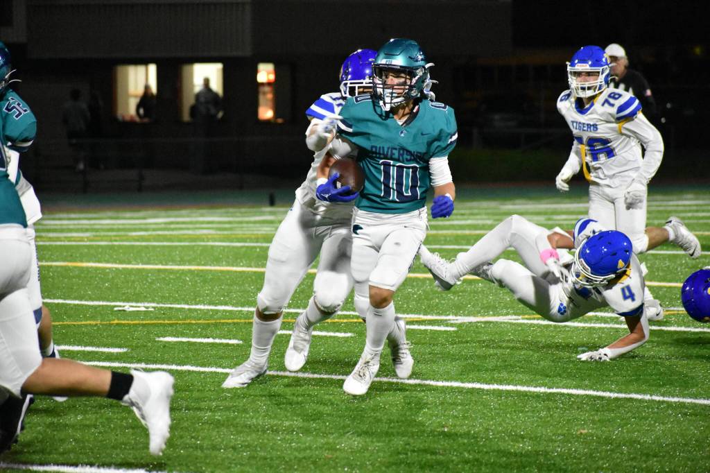 But a forced fumble and recovery by Joey Singh gave Auburn Riverside some momentum. Two plays later, quarterback Andrew Wold found Cole Svendsen on a beautiful ball over the Stadum defenders for a 44-yard touchdown pass with 7:10 left in the first quarter.