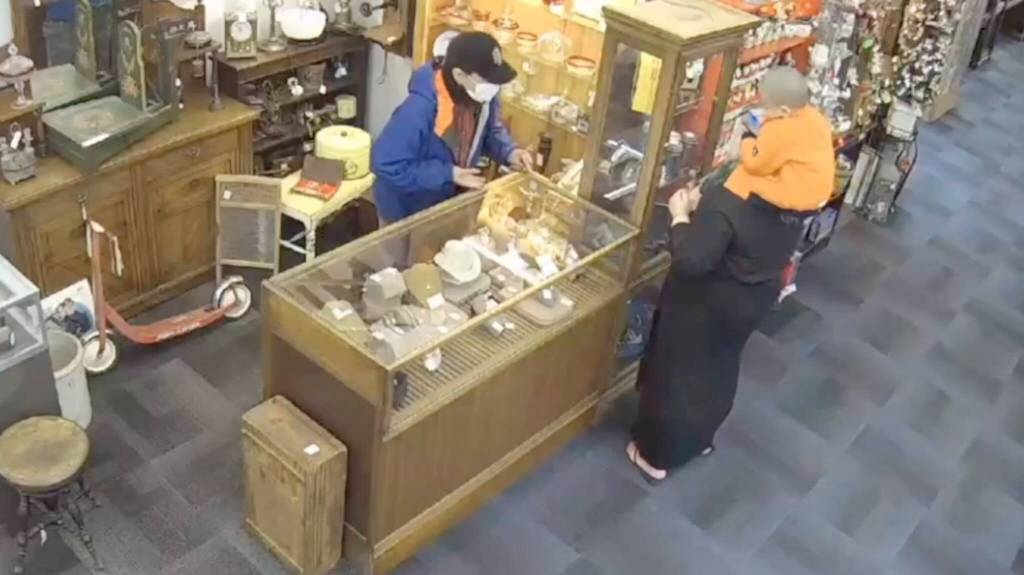 A duo who used a toddler as a distraction at Antique Marketplace carried out a jewelry theft, resulting in a loss of nearly $10,000 at the downtown Auburn business, according to the owner.
