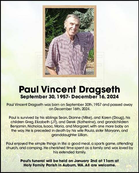 Paul Vincent Dragseth was born on September 30th, 1957 and passed away on December 16th, 2024.