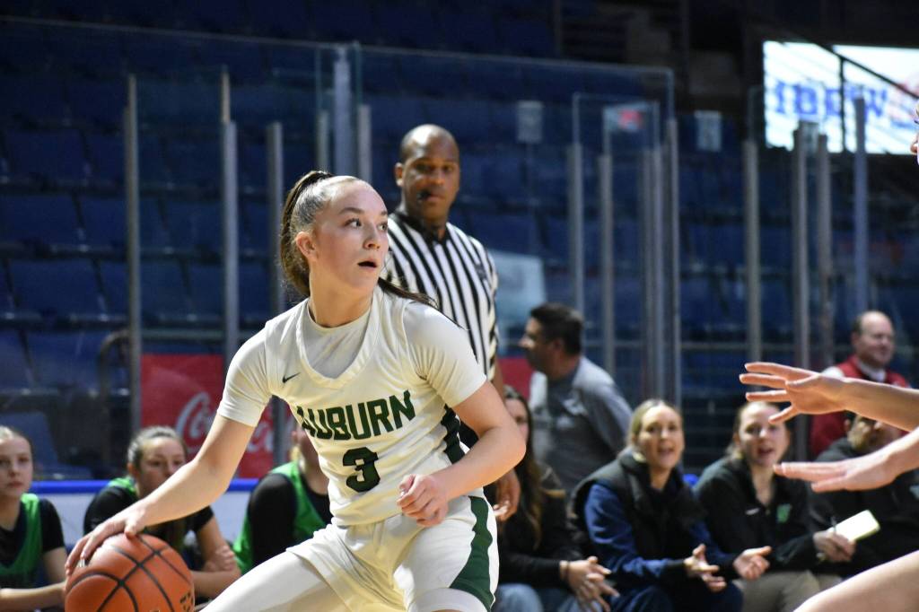 Heading to the fourth, Auburn was on top of Woodinville 39-36 after Sophie Christensen threw up a shot as the buzzer sounded for the three-point lead.