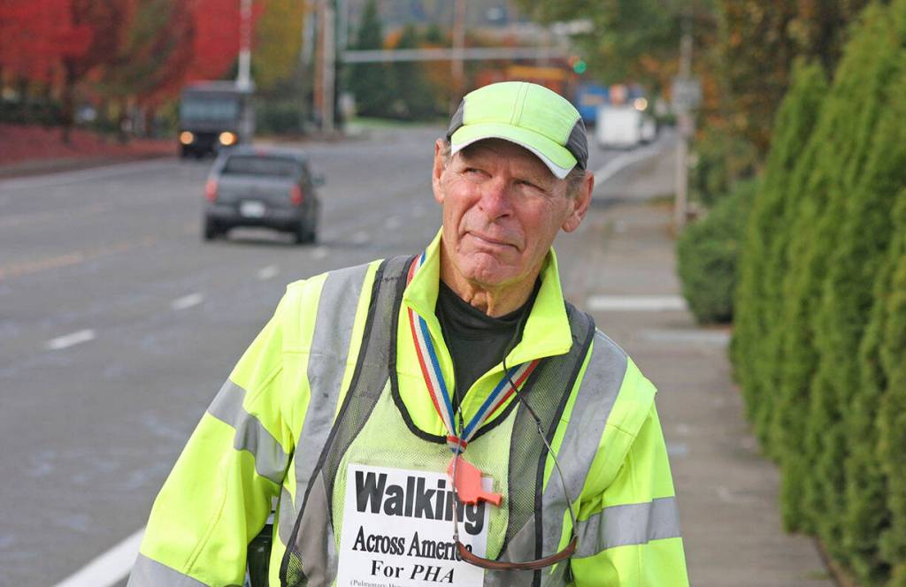He often limited his walks to 20 miles a day, Monday through Friday, with his wife of 40 years, Loretta, following him in a van. His benefit walks also took him to Kent, Sumner, Bonney Lake, Enumclaw, Tacoma, Spanaway and other area trails.