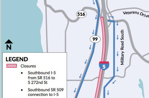 Local traffic can use SR 99 or Military Road South for a detour route. Southbound SR 167 will remain open for regional traffic.