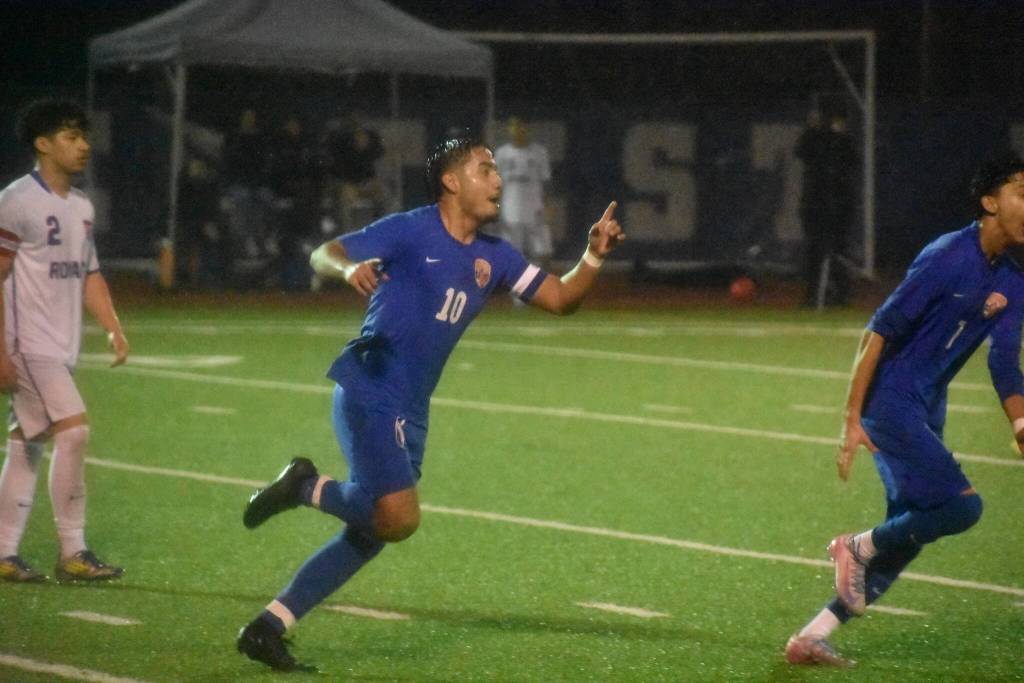 On another deflected ball, this one went straight up into the night sky and found the foot of freshman Chase Bennion. The forward timed the kick perfectly and sealed the win for Auburn Mountainview in the 66th minute of play.