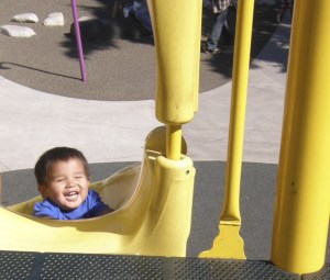 Jovahn "JoJo" Munson, all of 2, couldn't get enough of the slide at Auburn's Discovery Playground at Les…