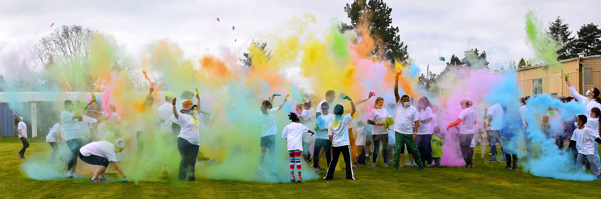 Colors were dispersed before, during and after the non-competitive 2.5-mile race, a benefit for the school. Participants covered a grass, dirt and concrete course, with three color-throwing stations.