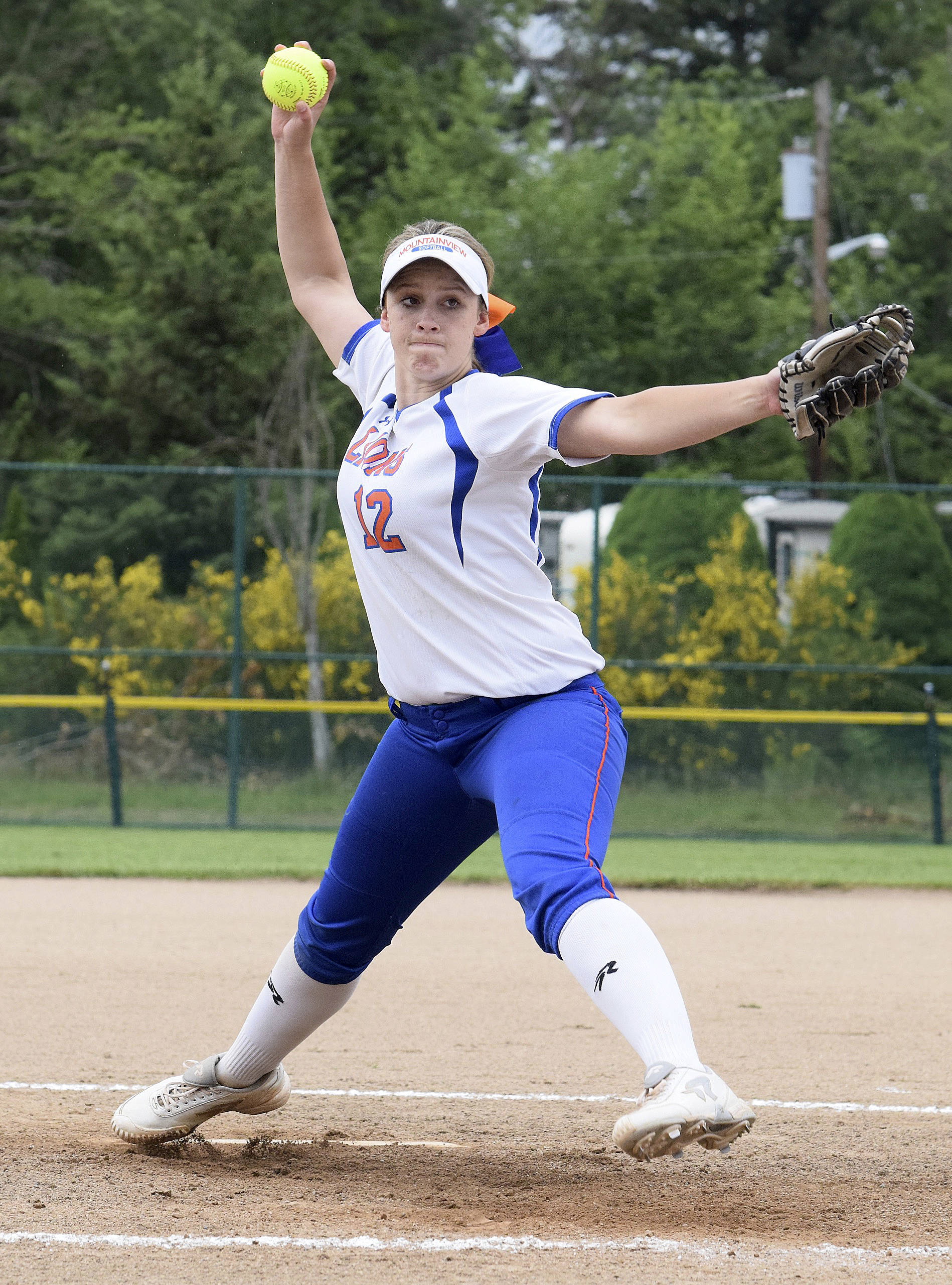 Caitlyn Rhoades allowed nine hits, striking out six and walking one, to get the win.